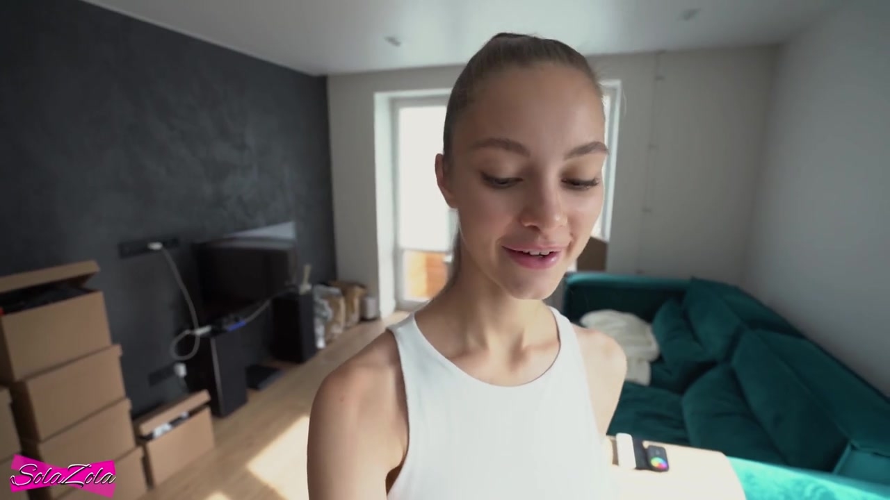 Недавно красотка Sola Zola съехала от родителей на съемную хату, чтобы заниматься там вебкамом, поэтому она перевозит все вещи в новый дом. Нанятый грузчик полдня таскал ее баулы и коробки с эротическим бельем, но соска не учла одну вещь: заработать она еще ничего не успела и платить мужику нечем. В общем-то шлюшка решила ворваться в карьеру с другой стороны и сходу предложила работяге секс за оказанную ей помощь. Тот был рад стать первым клиентом чики и готов в любой другой день помочь ей с чем угодно.