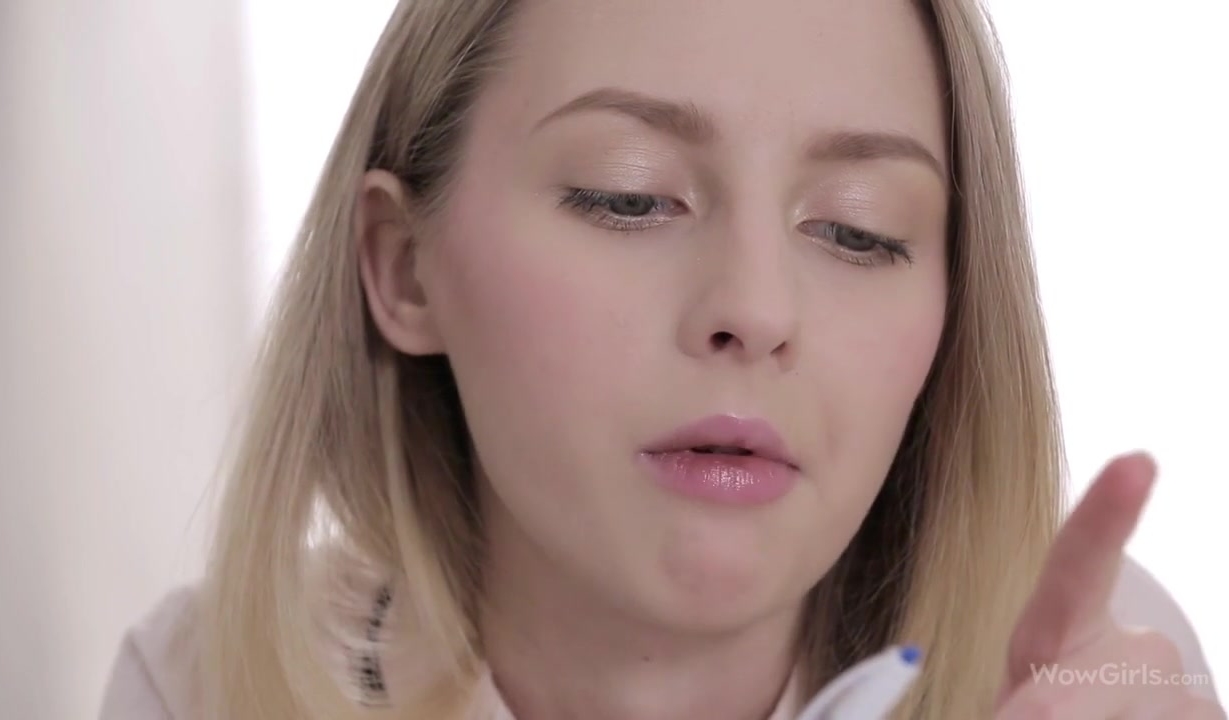 Блондинистая телка сидела и что-то усердно учила, ну или делала вид. Мы-то знаем, что она вовсю мечтала о фаллосах и крепких мужских хуях, которые бы могли смачно трахнуть ее узкие дыры. К счастью, деваха как раз ждала репетитора, но учиться она с ним собиралась хорошей половой ебле, а не математике или другой фигне. Мужик опоздал и времени у малыхи было немного, поэтому она сразу перешла к активным действиям и сама запрыгнула на дядьку в черном. Неизвестно, чему чувак собирался учить девку, но трахаться она теперь точно умеет.