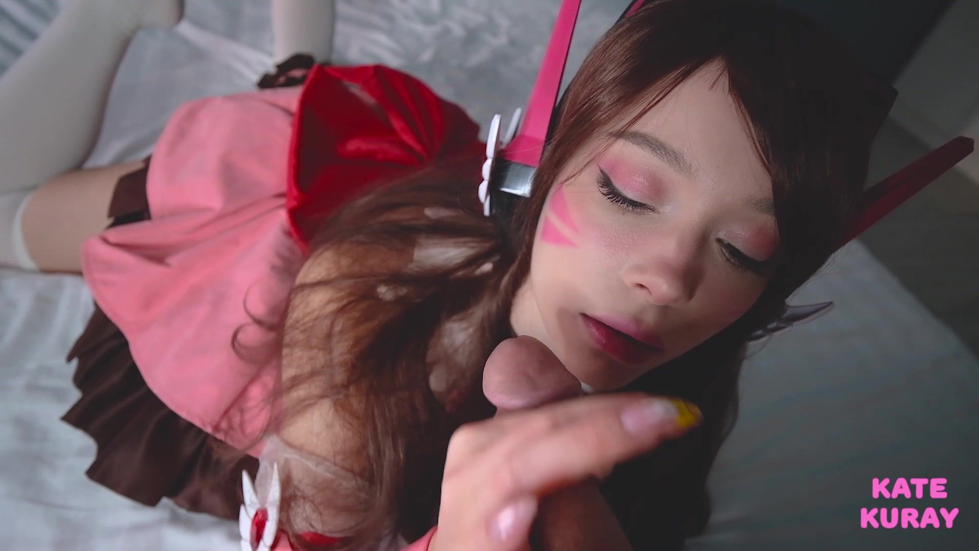 Бойфренд KateKuray любит задротствовать в игру Overwatch. Особенно ему там нравится персонаж D.Va. Шкура решила порадовать парня и надела костюм той самой дерзкой девчонки из игры. Образ любимой героини впечатлил парня, но еще больше ему понравилось, когда та призывно встала раком на кровати и начала тереть бритую писю. Мокрощелка явно напрашивалась на еблю, поэтому бойфренд расчехлил свой большой член и дал ей за щеку, а затем отжарил, наслаждаясь сладкими стонами девушки.