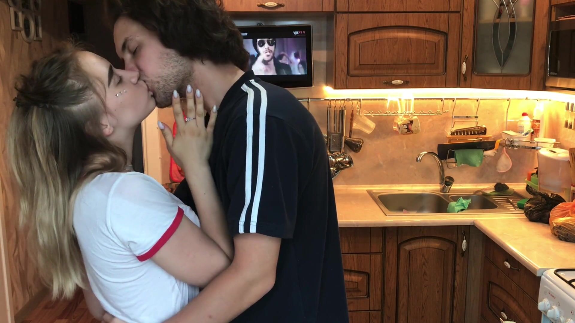 Брат решил напугать сеструху, а та от страха вылила на себя стакан воды — белая майка стала прозрачной, и её сиськи засияли, как прожекторы! Но вместо ржаки девка начала дохуя орать и ныть, чем заебала пацана по полной. Терпение лопнуло, и он решил: за гнилой базар надо отвечать! Достал свой огромный хуй и откуканил дуру так, что она и забыла, как возмущаться за невинную шутку.