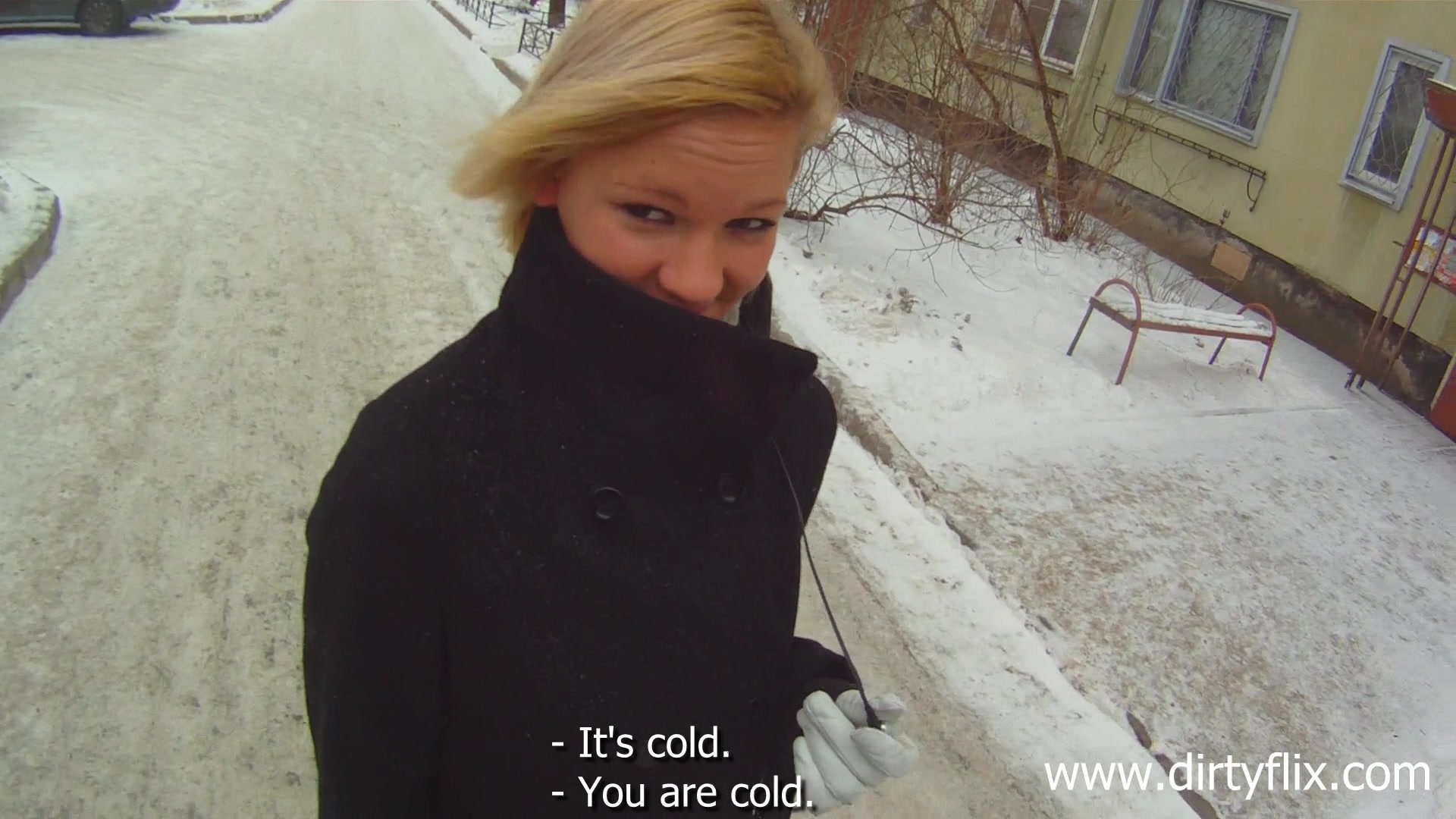 Обкидал снегом Аню, и уже скоро обкончал её тёплые мягкие сиськи