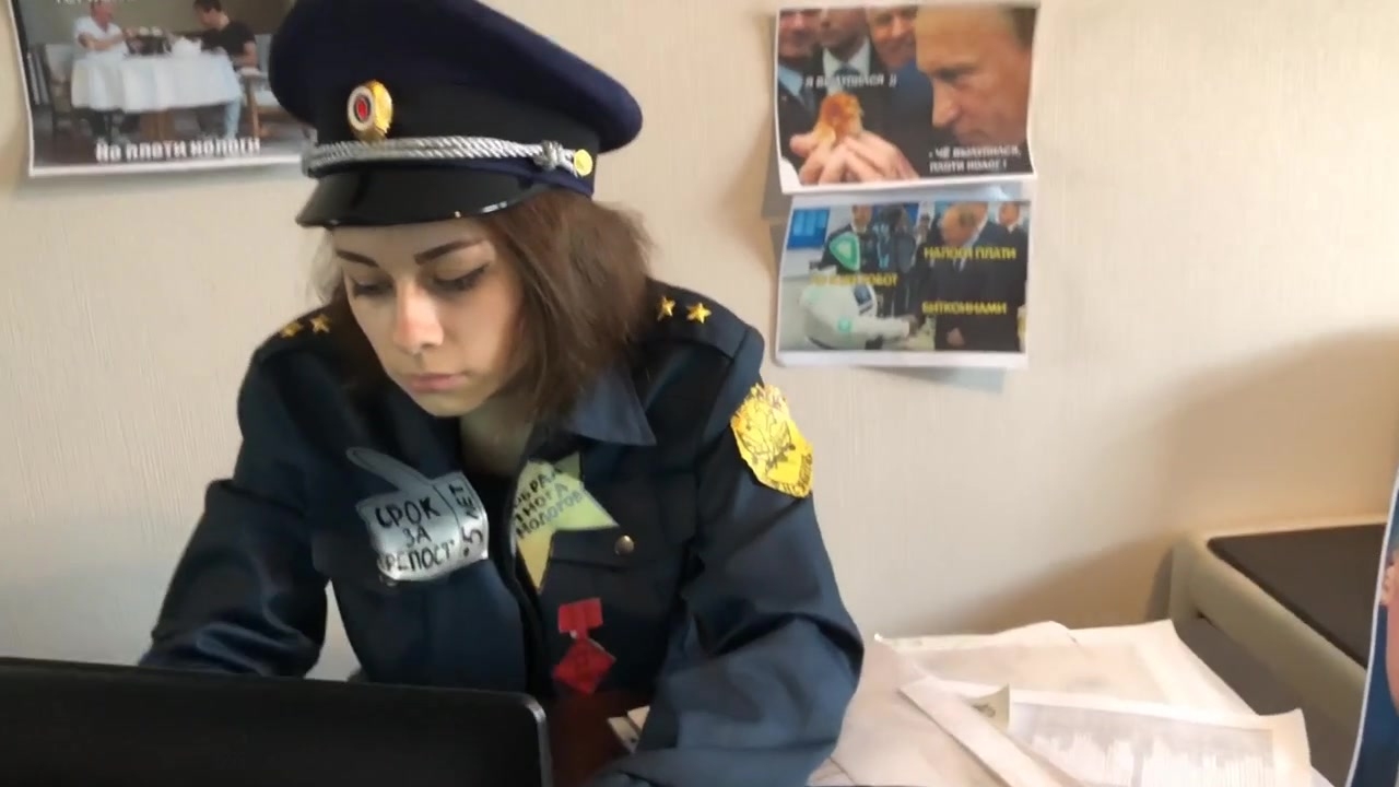 Был обычный день сотрудницы налоговой инспекции. Она пришла на работу, сняла штаны и сразу с утра приступила к обеду, попросив не мешать пришедшего на прием посетителя. Тот все же дождался, когда девушка освободится и начал улаживать важный вопрос. Чтобы закрыть большой долг, мужик деликатно положил на стол кучу бабла. Инспекторша уже мысленно покупала новые шмотки, согласившись на взятку. Но посетителем оказался полицейский, который попытался ее арестовать за столь ужасное преступление. Правда, заметив отсутствие штанов у инспекторши, он был моментально соблазнен хитрой девахой. Она умело отмазалась от тюрьмы, старательно поработав ротиком и пиздой.